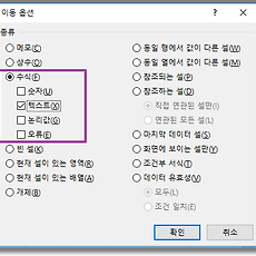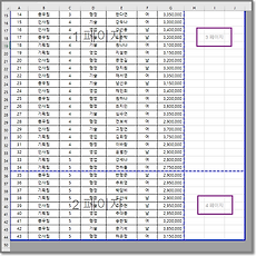 Excel/엑셀 팁(TIP)84 엑셀TIP] 텍스트로 인식된 시간, 날짜를 숫자형식으로 바꾸기 시스템이나 다른 프로그램으로부터 얻어낸 엑셀 파일의 경우 시간 데이터를 시간이 아닌 텍스트로 인식하는 경우가 있다. 엑셀이 데이터를 텍스트로 인식하면 셀서식에서 시간으로 설정하거나 사용자 지정에서 시간형식으로 지정해도 제대로 적용되지 않는다. (적용해도 적용되지 않는 시간 서식) 이런 상황인지 확인하는 방법은 마우스 더블클릭이나 F2 편집키를 누른 다음 엔터키를 눌러보면 된다. 만약 엔터키 입력 후 원하는 시간 형식으로 보인다면 텍스트로 인식된 데이터를 숫자(엑셀은 날짜나 시간을 숫자로 처리한다) 형식으로 변경해 줘야 한다. 텍스트로 된 날짜나 시간을 숫자 형식으로 바꿔주려는 데이터가 한 열이라면 [데이터 메뉴 - 텍스트 나누기] 기능을 이용하면된다. 여기서는 C열만 테스트로 해보자. C열 전체를 선택하.. 2017. 9. 11. 엑셀TIP] 특정 색깔의 셀 배경색 없애기 엑셀로 작업할 때 배경색을 원하는 색으로 채우는 색 채우기는 필요한 데이터를 쉽게 구분할 수 있게 도와주기 때문에 자주 사용된다. 이번 글에서 이렇게 설정한 배경색 중에서 특정한 색을 없애는 방법에 대해 알아본다. 아래 그림과 같은 경우 여러가지 필요에 의해서 배경색으로 구분하면서 작업을 하고 있는데 불필요한 색을 정리할 필요가 있는 경우를 가정해보자. 여기서는 노란색 배경색을 없애보려 한다. 블록으로 한꺼번에 잡아서 처리하기 어려워서 여러번 작업을 해야 하는데 이걸 간단하게 해보자. 노란 배경색이 설정된 부분 전체를 블록으로 선택하고[홈 탭 - 찾기 및 선택 - 바꾸기(Ctrl+H)]를 선택한다. 찾기 및 바꾸기 팝업창에서 [옵션]을 선택한다. 이 화면에서 [찾을 내용 - 서식]을 클릭하고 [채우기] .. 2017. 6. 20. 엑셀Tip] 1행으로 된 자료를 2열로 정리하기 이전 블로그에서 2열로 된 데이터를 아래 행으로 옮겨서 2행으로 만드는 방법에 대해 정리했었다. - 엑셀] 데이터를 아래로 옮겨 2열을 2행으로 만들기 이번 글에서는 위 그림과 반대로 1행으로 된 자료를 2열씩 끊어서 옮기는 방법에 대해서 알아본다. 행으로 된 자료를 몇 개의 열로 옮기려면 offset함수를 사용한다. OFFSET함수는 참조를 반환하는 함수로 기본 구문은 아래와 같다. OFFSET(기준셀, 행방향 이동 수, 열방향 이동 수, 참조 높이, 참조 너비) 즉, offset함수는 기준 셀에서부터 행 방향과 열 방향으로 각각 이동한 다음 그 셀값을 반환하는 함수이다. offset함수 사용이 익숙하지 않으면 어떤 숫자가 들어가야 하는지 생각하면서 거꾸로 수식을 만들어가는 방법을 사용하는 것이 낫다... 2017. 5. 22. 엑셀TIP] 엑셀 인쇄에 불필요한 빈 페이지 인쇄되지 않게 하기 사무실의 윗분이 진지하게 물어보신다. "왜 엑셀은 인쇄할 때마다 불필요한 종이가 추가로 나오는거야? 내용은 2페이지더라도 3장이나 4장이 나오더라구. 종이 아깝게..." 그래서 찬찬히 설명해드리고 알려드렸다. 인쇄할 때 불필요한 페이지가 따라붙어서 인쇄되지 않도록 하는 방법을. ^^; 아래 그림은 2페이지 분량의 문서이다. 불필요한 페이지가 인쇄되는 경우는 문서작업이나 편집 때 보이지 않는 문자(주로 스페이스)가 입력되어서 그런 경우가 대부분이다. J17 셀에 스페이스를 한 칸 입력해보자. 페이지가 4페이지로 늘어나버렸따. 이렇게 눈에 보이지 않는 문자 때문에 인쇄 때 불필요한 페이지가 인쇄되는 상황이라고 가정하고 해결방법을 알아보자. 데이터가 없는 부분을 전부 삭제한다. 즉, 현재 데이터가 있는 부분의.. 2017. 5. 12. 엑셀TIP] 데이터 입력을 편하게 : 단축키 엑셀 작업시 기본 데이터를 조금 편리하게 입력할 수 있게 도와주는 단축키. 위쪽 셀과 같은 값 : Ctrl+D, Ctrl+' 아래 그림과 같은 인사기록을 입력하는 경우를 예를 들어보자. 바로 위쪽 셀에 있는 값과 동일한 텍스트를 입력해야 한다면 Ctrl+D 또는 Ctrl+'(작은 따옴표)를 눌러보자. 같은 내용(인사팀)이 입력된다. 단축키 Ctrl+D와 Ctrl+'의 차이점은 텍스트일 때는 상관없고 복사하는 바로 위쪽 셀 값이 수식일 경우Ctrl+D는 현재 위치한 셀의 위치를 고려해서 수식을 복사하고Ctrl+'는 위 쪽 셀의 수식을 그대로 복사한다는 차이점이 있다. 목록 중에서 고르기 데이터 유효성 검사에서 목록이 리스트로 나타나는 것처럼 Alt+↓(아래 화살표)를 누르면 위쪽에 입력된 데이터 중에서 유.. 2017. 5. 4. 엑셀TIP] 텍스트와 숫자 데이터 중에서 텍스트만 선택하기 엑셀로 작업할 때 숫자 데이터와 문자 데이터가 섞여있을 때가 있다. 주로 웹 데이터를 크롤링하거나 시스템에서 자료를 다운로드해서 엑셀로 옮겨와서 작업할 때 이런 일이 일어나는듯 싶다. 아래 그림처럼 1부터 10까지의 데이터의 합이 55가 아니라 45가 나온 이유는 데이터 중 일부(2, 8)가 텍스트이기 때문이다. 왼쪽 그림처럼 문단 정렬을 하지 않은 경우라면 숫자는 오른쪽 정렬, 텍스트는 왼쪽 정렬이 기본값이기 때문에 구분하기 쉽지만 오른쪽 그림처럼 중앙정렬을 한 경우는 쉽게 구분하기 어렵다. * 숫자와 텍스트 형식으로 된 데이터의 구분 방법에 대한 내용은 이전 블로그 글 참고. - 엑셀] 입력된 값이 