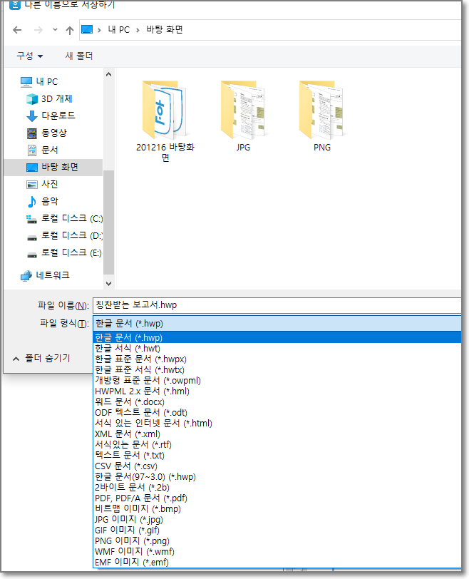 혹시나 한컴오피스 프로그램을 가지고 있지 않은 사람을 위한 배려일 수도 있고, 자신이 만든 자료를 수정, 편집하지 못하도록 할 수 있기 때문이다.