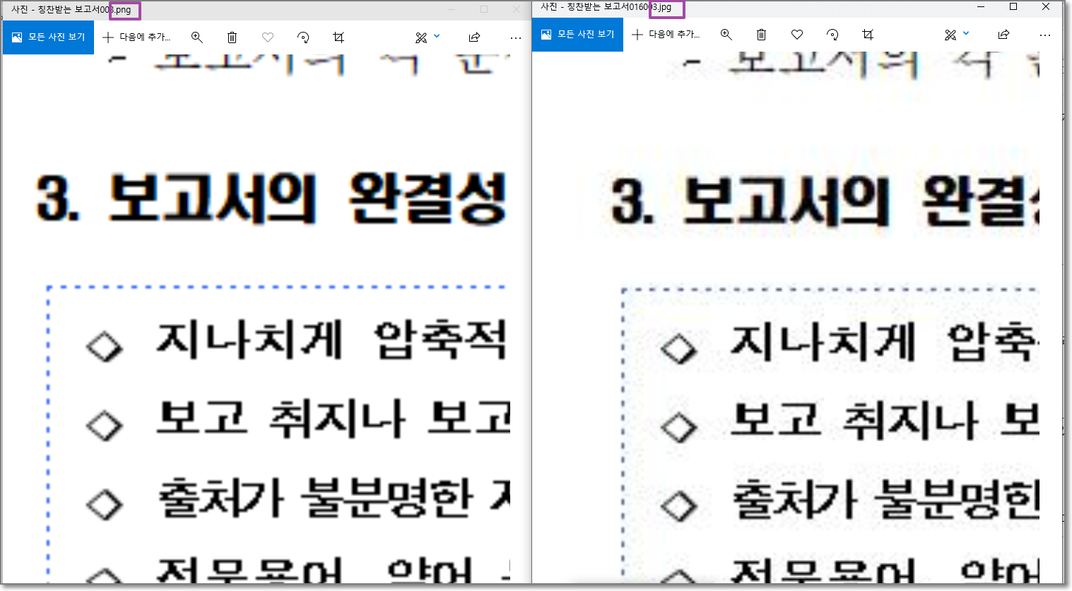 사진 이미지 같은 경우는 jpg 파일이 더 깔끔한 느낌을 주기도 하지만 문서를 그림으로 저장할 때는 png 파일이 더 가독성이 좋게 느껴진다.