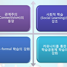 상호작용 및 접근성] 이러닝 2.0 * 이러닝 2.0의 이해 - 기존 이러닝에 비해 보다 발전된 의미를 강조하기 위한 맥락에서 웹2.0 기술의 활용을 강조하는 의미 - 학습자들이 관심에 따라 학습과정에 능동적으로 참여하고, 학습에 참여하는 구성원간의 상호작용을 통해서 지식을 공유하고, 연계하여 자신의 지식을 재구조화하는 활동을 수행하기 위해 웹2.0 기술을 활용하는 학습 - 웹2.0 기술을 학습환경으로 활용, 학습자의 능동적인 참여, 구성원간의 상호작용 강화, 지식의 상호 공유 및 연계 * 이러닝 2.0 환경 ㅇ 커뮤니티의 활용형태 기존 이러닝 이러닝 2.0 - 학습관리시스템을 사용하여 기능을 인위적으로 규정함 - 수업과 관련된 특정 주제의 학습을 위해 활용함 - 제한된 학습자 그룹을 대상으로 수업기간 내에서 특정 기간 활용함 - 커뮤니티.. 2013. 3. 30.